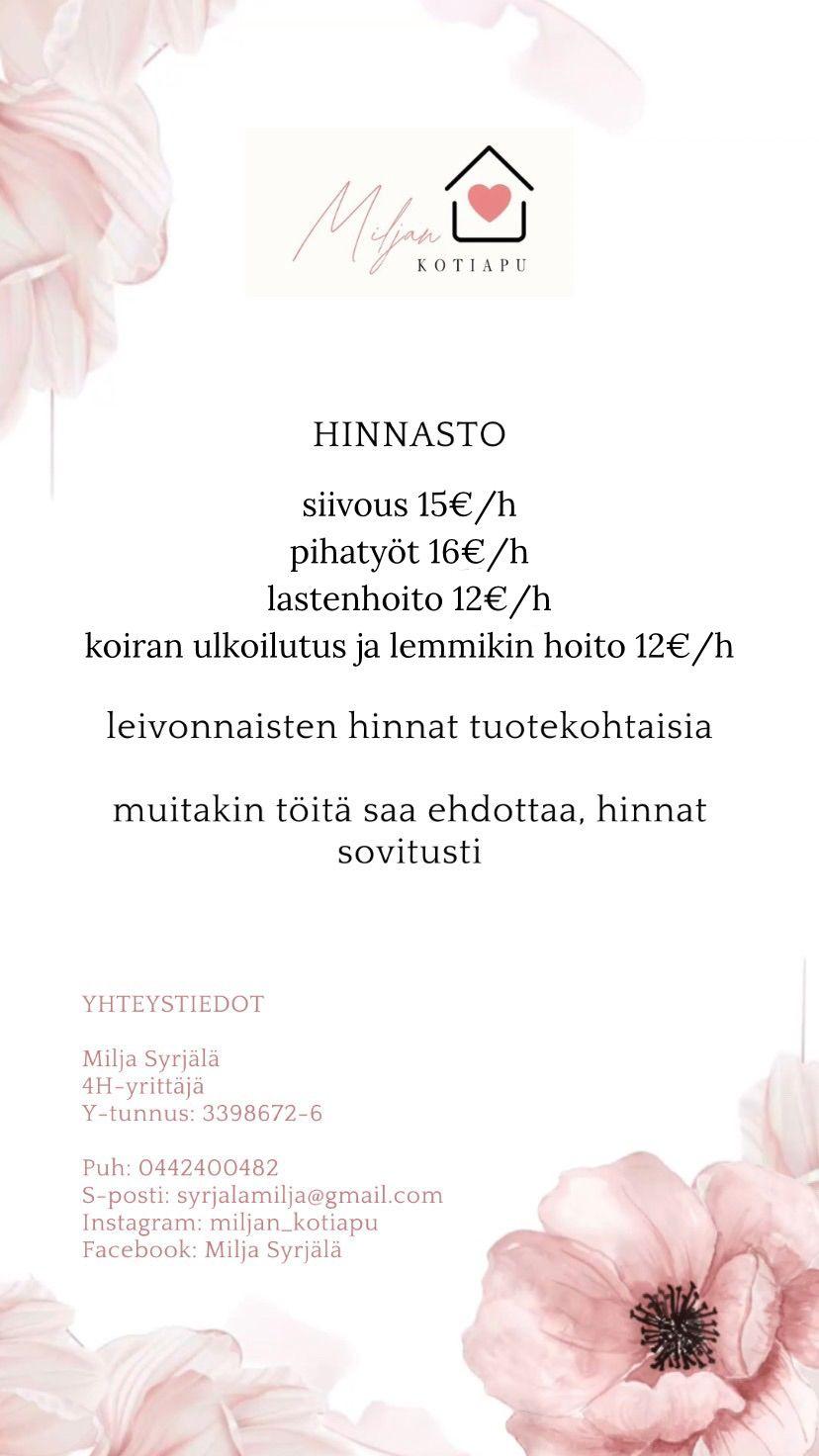 Löydät minut IG: miljan_kotiapu ja Facebook: Milja Syrjälä