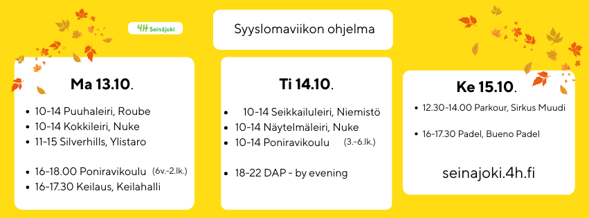 Tältä sivulta löydät syyslomaviikon 2025 ohjelman sekä linkit ilmoittautumislomakkeille